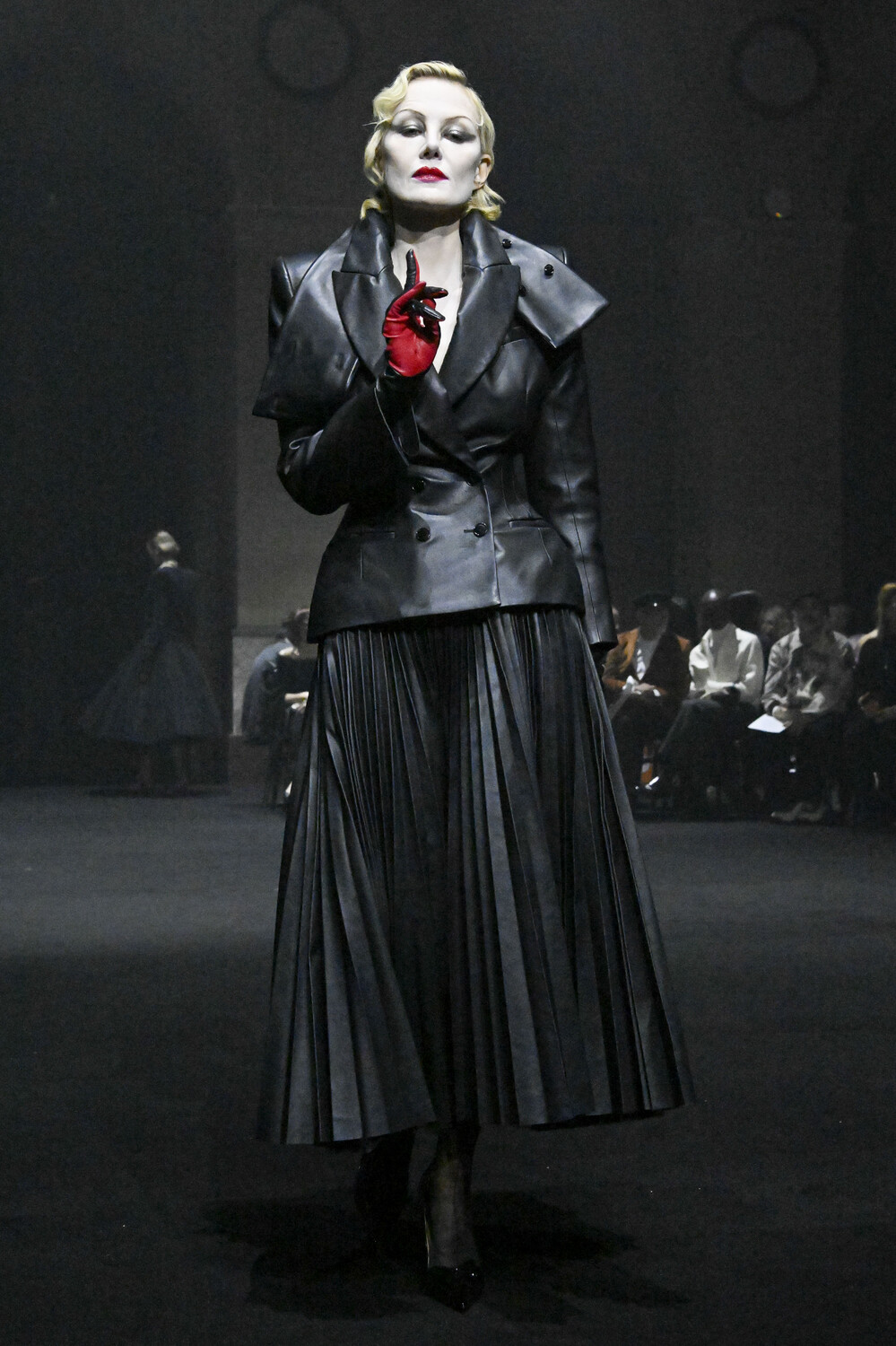 Актриса Рената Литвинова появилась на подиуме в кожаном жакете и юбке