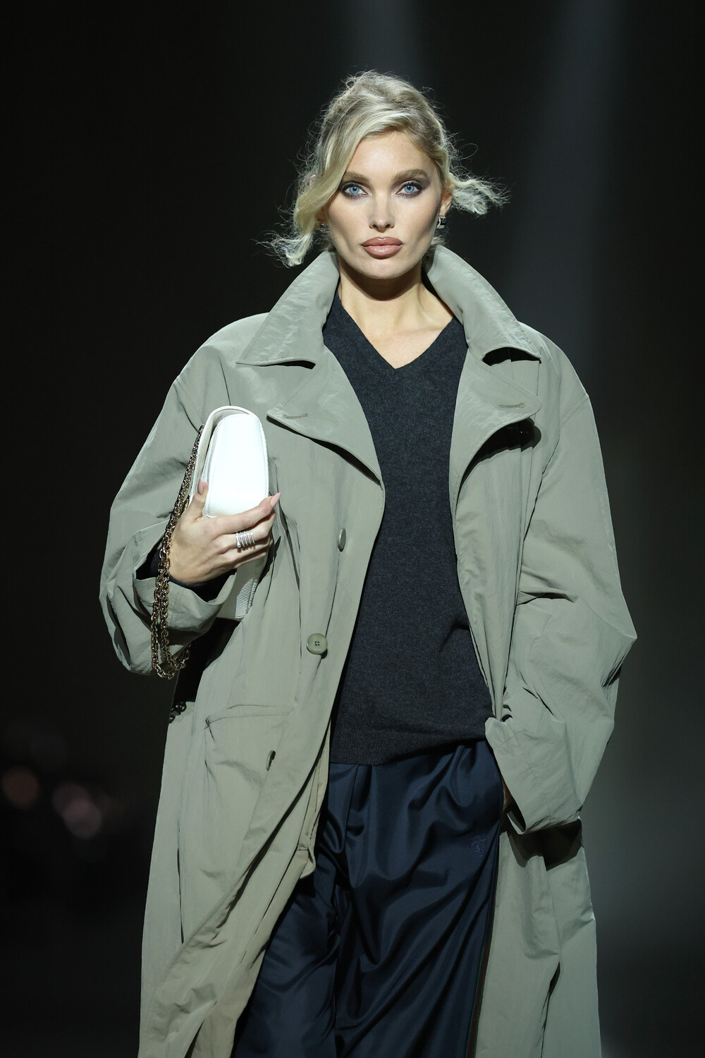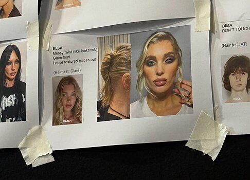 Эльза Хоск вышла на подиум в синих брюках, джемпере и тренче цвета хаки. В руках модель держала белую кожаную сумку. Волосы ей собрали в высокий пучок и небрежно выпустили пряди у лица. Однако особое внимание она обратила в соцсетях на свой макияж — «заплаканные» глаза с потекшей тушью и подводкой, а также кремовая помада с карандашом в тон.