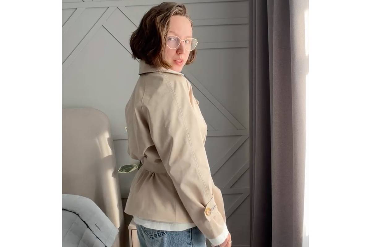 В результате россиянка отрезала нижнюю часть тренча и прострочила край на швейной машинке. Затем она показала итог своей работы, примерив укороченное изделие с джинсами. Кроме того, она придумала необычный способ стилизации пояса.