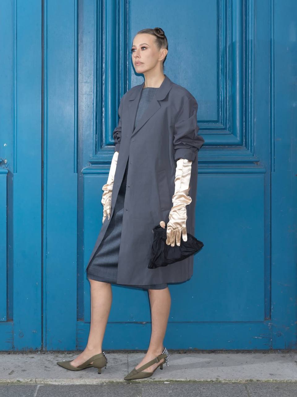 Журналистка Ксения Собчак снялась в платье и перчатках в Париже. Снимками она поделилась в Telegram-канале.