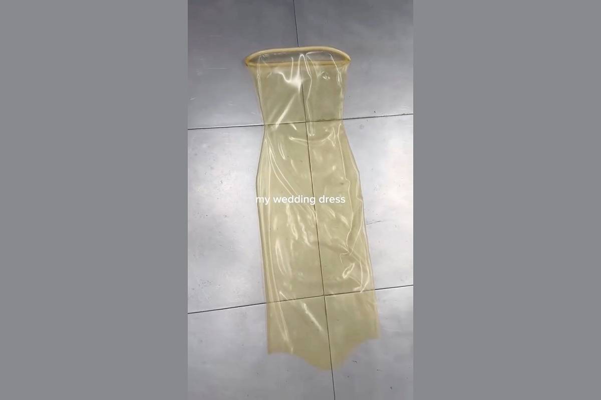 На размещенных кадрах зрителям продемонстрировали обтягивающее прозрачное платье без бретелей, изготовленное из латекса. С момента публикации ролик набрал 285 тысяч лайков и более шести тысяч комментариев.