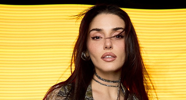Ханде Эрчел позировала в купальнике с лентами вокруг талии и накидке со змеиным принтом. Актрисе сделали укладку с легкими локонами и вечерний макияж.