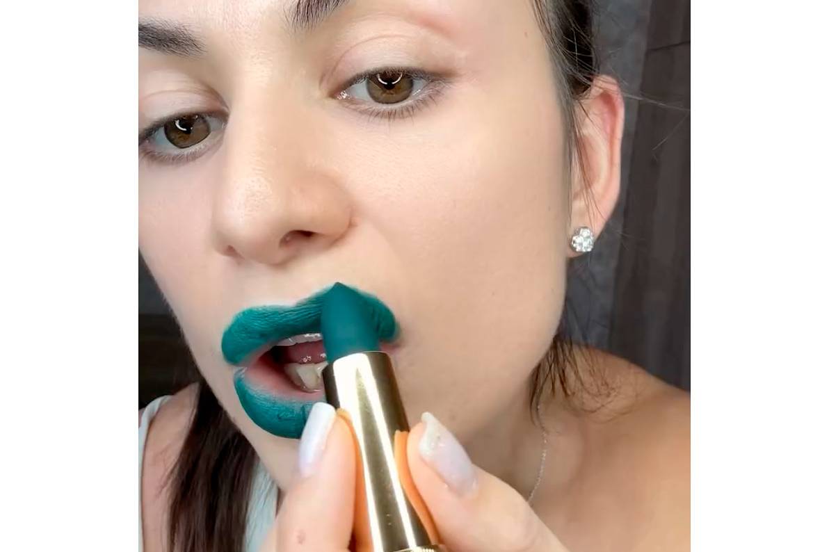 Юзерша с никнеймом сrushbrowgirl продемонстрировала золотистый тюбик люксового средства, а затем накрасила им губы. В ролике видно, что помада за высокую стоимость оказалась иссиня-зеленого оттенка.