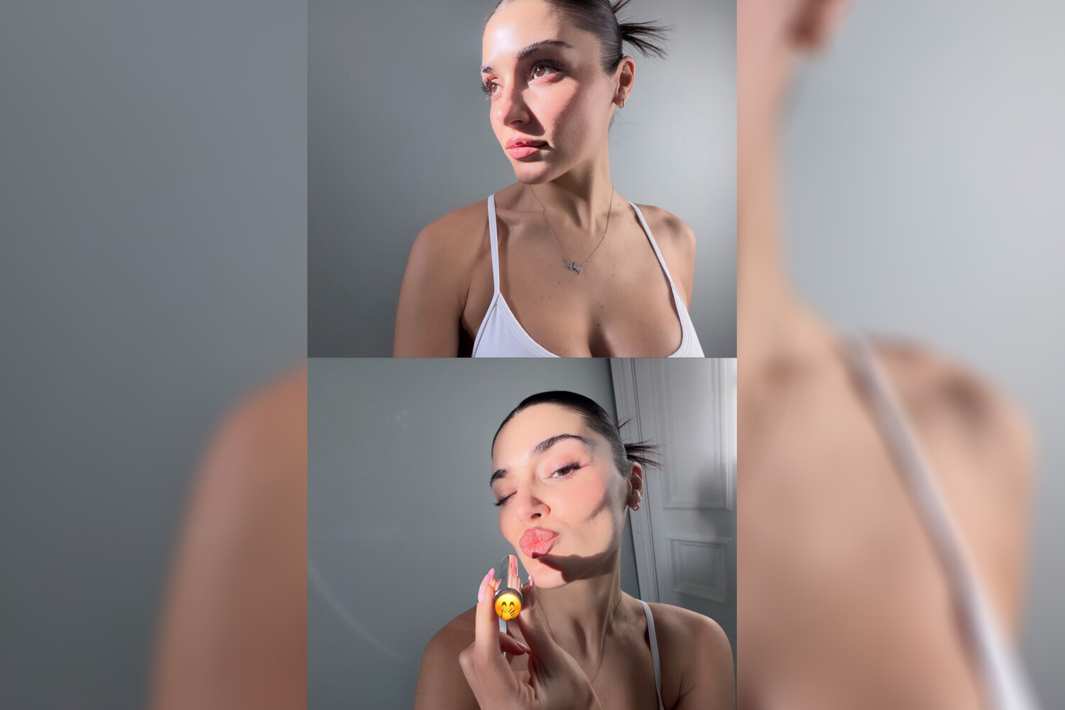 Ханде Эрчел позировала в белом бюстгальтере с глубоким декольте. Волосы она собрала в высокий хвост и сделала легкий макияж с румянами и помадой.