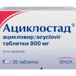 У детей старше 6 лет рекомендуемая доза ацикловира составляет по 800 мг (1 таблетка Ациклостад®, таблетки 800 мг) 4 раза в сутки. Курс лечения составляет 5 дней.