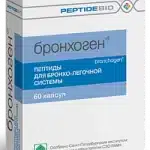 2 капсула содержит:Активное вещество: пептидный комплекс АКС-Б (аланин, глутаминовая кислота, аспарагиновая кислота, лейцин) — Бронхоген 100 мкг;