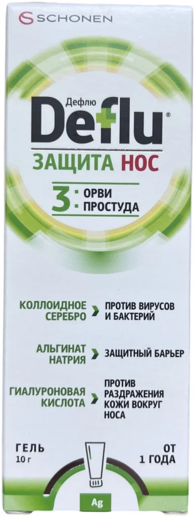 Дефлю Защита Нос — это назальный гель, предназначенный для профилактики и облегчения течения острых респираторных вирусных заболеваний (ОРВИ), а также для ухода за кожей вокруг носа при раздражениях, вызванных насморком.