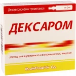 Дозирование Взрослые. Рекомендуемая доза составляет 50 мг декскетопрофена каждые 8-12 часов. При необходимости, введение можно повторить через 6 часов. Общая суточная доза не должна превышать 150 мг декскетопрофена. Дексаром предназначен для краткосрочного применения, лечение должно быть ограничено острым симптоматическим периодом и не должно превышать два дня. Как только становится возможным, пациенты должны перейти на пероральное обезболивающее лечение. Для того, чтобы свести к минимуму риск возникновения побочных эффектов, рекомендуется использовать минимальную эффективную дозу в течение самого короткого периода времени, необходимого для контролирования симптомов. Пожилые. В целом, нет необходимости в регулировании дозировки у пожилых пациентов. Однако, из-за физиологического снижения функции почек у пациентов пожилого возраста, рекомендуется более низкая доза в случае легкой почечной недостаточности: 50 мг декскетопрофена – общая суточная доза. Печеночная недостаточность. В случае пациентов с легкой до умеренной степени печеночной недостаточности (Child-Pugh 5-9), общая суточная доза должна быть снижена до 50 мг Дексарома при тщательном мониторинге функции печени. Дексаром не следует принимать пациентам с тяжелой печеночной недостаточностью (Child-Pugh 10-15). Почечная недостаточность. У пациентов с легкой почечной недостаточностью (клиренс креатинина 50-80 мл/мин) доза должна быть уменьшена до общей суточной дозы 50 мг Дексарома. Дексаром не следует принимать пациентам с тяжелой почечной недостаточностью (клиренс креатинина < 50 мг/мл).Дети и подростки. Безопасность и эффективность Дексарома в педиатрической практике не была установлена. Для внутривенного и внутримышечного введения.Внутримышечно. Содержимое одной ампулы Дексарома (2 мл) вводят путем медленной инъекции глубоко в мышцу. Внутривенно. Внутривенная инфузия: для введения в виде внутривенной инфузии, содержимое одной ампулы (2 мл) с препаратом Дексаром разводят в 30-100 мл физиологического раствора, раствора глюкозы или раствора Рингера (лактата). Приготовленный раствор должен быть прозрачным и бесцветным. Продолжительность введения от 10 до 30 мин. Внутривенное болюсное введение: При необходимости, содержимое одной ампулы (2 мл) с препаратом Дексаром следует вводить внутривенно медленно в течение минимум 15 секунд. Инструкции для введения лекарственного средства: если Дексаром вводят внутримышечно или внутривенно болюсно, раствор следует вводить немедленно после извлечения из ампулы.Для применения в виде внутривенной инфузии раствор должен быть подготовлен в стерильных условиях, защищен от попадания прямых солнечных лучей из-за светочувствительности препарата и применен сразу после приготовления.