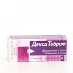 Фармакокинетика Дексаметазон быстро абсорбируется в передней камере глаза, включая роговицу, конъюнктиву, водянистую влагу и хрусталик. Максимальное действие достигается через 10-20 минут от момента инстилляции офтальмологического раствора, через 30 минут дексаметазон определяется в плазме крови, желчном пузыре, печени и почках, моче. Системное всасывание дексаметазона после местного применения ДексаТоброма низкое. Уровень максимальной концентрации в плазме крови колеблется от 220 до 888 пг/мл (в среднем 555±217 пг/мл) после закапывания 1 капли ДексаТоброма в каждый глаз 4 раза в сутки в течение 2 дней. Приблизительно 60% впитавшейся дозы дексаметазона выводится с мочой в виде 6-в-гидрогидексаметазона. Неизмененный дексаметазон в моче не выявлен. Период полувыведения из плазмы крови относительно короткий — 3–4 ч. Дексаметазон приблизительно на 77–84% связывается с альбумином плазмы крови. Клиренс колеблется от 0,111 до 0,225 л/ч/кг, а объем распределения — от 0,576 до 1,15 л/кг. Тобрамицин переходит в очень маленьких количествах в водянистую влагу, системно абсорбируется. Системное всасывание тобрамицина после местного офтальмологического применения низкое. Уровни концентрации тобрамицина в плазме крови не поддавались количественному определению у 75% пациентов, которым закапывали глазные капли ДексаТобром в каждый глаз 4 раза в сутки в течение 2 дней. Наивысший измеренный уровень составлял 0,25 мкг/мл, что в 8 раз ниже, чем концентрация 2 мкг/мл, которая находится ниже границы риска возникновения нефротоксичности. Незначительно (менее 10%) связывается с белками плазмы крови. Тобрамицин в неизмененном состоянии экскретируется в мочу посредством преимущественно клубочковой фильтрации. Период полувыведения из плазмы крови составляет приблизительно 2 ч (с клиренсом 0,04 л/ч/кг и объемом распределения 0,26 л/кг). Фармакодинамика Комбинированный препарат с антибактериальным и противовоспалительным действием для местного применения в офтальмологии. Дексаметазон - синтетический глюкокортикостероид, в состав молекулы которого входит атом фтора. Оказывает выраженное противовоспалительное, противоаллергическое и десенсибилизирующее действие, а также противошоковое и антитоксическое действие, обладает иммунодепрессивной активностью. Эти эффекты связаны с угнетением высвобождения эозинофилами медиаторов воспаления; индуцированием образования липокортинов и уменьшения количества тучных клеток, вырабатывающих гиалуроновую кислоту; с уменьшением проницаемости капилляров; стабилизацией клеточных мембран (особенно лизосомальных) и мембран органелл. Иммунодепрессивный эффект обусловлен торможением высвобождения цитокининов (интерлейкина 1,2; гамма-интерферона) из лимфоцитов и макрофагов. Основное влияние на обмен веществ связано с катаболизмом белка, повышением глюконеогенеза в печени и снижением утилизации глюкозы периферическими тканями. Незначительно задерживает натрий и воду в организме. Не обладает минералокортикоидной активностью. Дексаметазон подавляет активность витамина D, что приводит к снижению всасывания кальция и увеличению его выведения, также подавляет синтез и секрецию адренокортикотропного гормона (АКТГ) и вторично — синтез эндогенных глюкокортикостероидов. Тобрамицин - антибиотик широкого спектра действия из гр