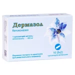 ДЕРМАЗОЛ® вагинальные суппозитории рекомендуется применять на ночь, так как препарату свойственны осмотическое и дренажное действие, что сопровождается увеличением выделений из влагалища.Беременность и период лактацияХотя системная абсорбция при интравагинальном применении кетоконазола очень низкая ДЕРМАЗОЛ® не применяют в I триместре беременности. Во II-III триместре и в период кормления грудью препарат применяют только тогда, когда ожидаемая польза для матери превышает потенциальный риск для плода и ребенка.Особенности влияния лекарственного средства на способность управлять транспортным средством или потенциально опасными механизмамиКетоконазол вагинальные суппозитории не влияют на способность управлять транспортным средством или другими механизмами.