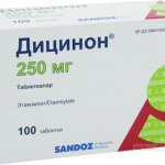 Препарат не эффективен у больных с тромбоцитопенией. При геморрагических осложнениях, связанных с передозировкой антикоагулянтов, рекомендуется использовать специфические антидоты. Применение препарата Дицинон® у пациентов с нарушенными показателями свертывающей системы крови возможно, но оно должно быть дополнено введением препаратов, устраняющих выявленный дефицит или дефект факторов свертывающей системы крови. При гемобластозе у детей (лимфатическая и миелоидная лейкемия, остеосаркома) следует применять препарат с особой осторожностью (так как отмечалось ухудшение состояния). Если Дицинон® применяют для уменьшения чрезмерного и/или длительного менструального кровотечения и улучшения не отмечено, следует исключить возможные патологические причины. Препарат содержит лактозу, поэтому не следует назначать препарат больным с редкой врожденной непереносимостью галактозы, лактазной недостаточностью или синдромом мальабсорбции глюкозы-галактозы. Беременность и период лактации Безопасность применения препарата при беременности не установлена. Дицинон® следует применять при беременности только в индивидуальных случаях, если это считается необходимым, когда потенциальная польза для матери превышает потенциальный риск для ребёнка. При необходимости назначения препарата в период лактации следует решить вопрос о прекращении грудного вскармливания. Особенности влияния лекарственного средства на способность управлять транспортным средством или потенциально опасными механизмами Исследования по изучению влияния препарата на способность к вождению автотранспортом и управлению механизмами не проводились.