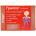 Парацетамол быстро и практически полностью абсорбируется из желудочно-кишечного тракта. Максимальная концентрация его в плазме крови достигается через 2 часа после перорального применения. Приблизительно 25% парацетамола связывается с белками плазмы крови. Парацетамол метаболизируется в печени и выводится преимущественно с мочой в виде глюкуронидных и сульфатных коньюгатов. В неизмененном виде выводится менее 5%. Период полувыведения составляет 1 – 4 часа. Кофеин быстро абсорбируется и распределяется по всем органам и тканям организма, включая ЦНС, эмбриональные ткани и грудное молоко. Он быстро метаболизируется и выводится преимущественно с мочой (70%). Фенилэфрин быстро всасывается после перорального применения, пиковые концентрации в плазме крови достигаются через 1 – 2 часа, уровень всасывания – 70%, период полувыведения – 2 – 3 часа, выводится преимущественно с мочой. Хлорфенирамина малеат быстро абсорбируется из желудочно-кишечного тракта и распределяется по всем тканям организма. Приблизительно 25% связывается с протеинами плазмы. ГрипгоТМ – это комбинированный лекарственный препарат, действие которого обусловлено компонентами, входящими в его состав. Парацетамол – это анальгетик-антипиретик, имеющий жаропонижающие и обезболивающие свойства, а также незначительный противовоспалительный эффект, связанный с влиянием парацетамола на гипоталамический центр терморегуляции и его возможностью ингибировать синтез простагландинов. Кофеин – это алкалоид группы метилксантинов, который непосредственно стимулирует дыхательный и сосудодвигательный центры головного мозга, улучшает физическое и эмоциональное состояние пациента, благодаря чему уменьшаются проявления астении при инфекционных заболеваниях. Увеличивает аналгезирующий эффект парацетамола. Фенилэфрина гидрохлорид – адреномиметическое средство, которое уменьшает отек и гиперемию в верхних отделах дыхательных путей и синусах, что способствует улучшению носового дыхания. Стимулирует преимущественно альфа-адренорецепторы, благодаря чему происходит сужение периферических сосудов и уменьшение их проницаемости, уменьшается образование слизистого секрета. Хлорфенирамина малеат – антигистаминное средство, которое уменьшает аллергический компонент инфекционного заболевания. Конкурентно блокирует гистаминовые Н1-рецепторы и препятствует развитию эффектов гистамина, устраняет насморк, зуд в носе и резь в глазах.
