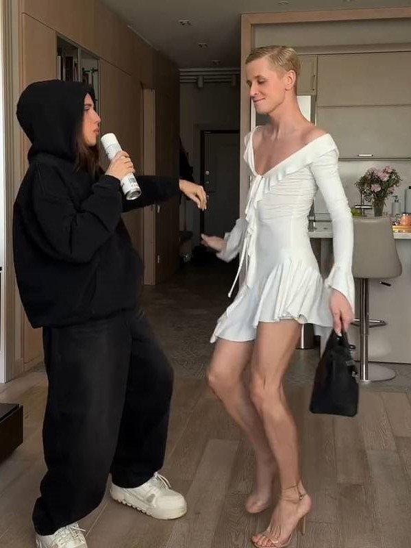Так, модель Зина Драбинястая с никнеймом drabinyastaya1729 опубликовала ролик, на котором предстала в черной толстовке и свободных джинсах. При этом второй герой ролика, Павел, надел ее белое укороченное платье и бежевые босоножки на каблуках, держа в руках черную сумку Hermes Birkin. Пара станцевала под песню Егора Крида «Алло».